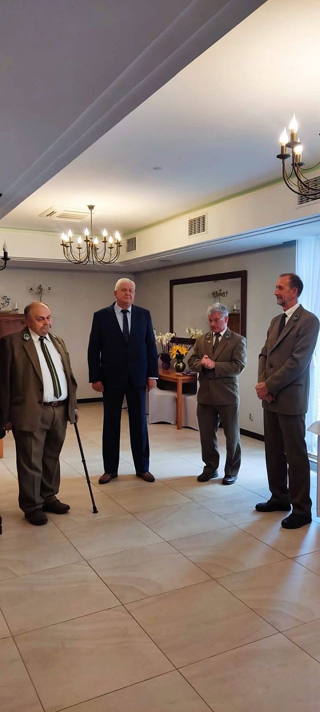 Obaj Panowie od blisko 40 lat przynależą do Stowarzyszenia Inżynierów i Techników Leśnictwa i Drzewnictwa, które postanowiło wyróżnić ich za te wszystkie lata służby lasom doświadczalnym ZŁOTĄ ODZNAKĄ HONOROWĄ. Pan Jacek Radoś odebrał osobiście to odznaczenie już wcześniej z rąk przedstawiciela Zarządu Głównego podczas tegorocznych obchodów Dnia Leśnika w Kaliszu. Panu Henrykowi Dzięciołowskiemu, który nie mógł brać w nich udziału mieliśmy okazję wręczyć to wyróżnienie podczas spotkania w Ustroniu.